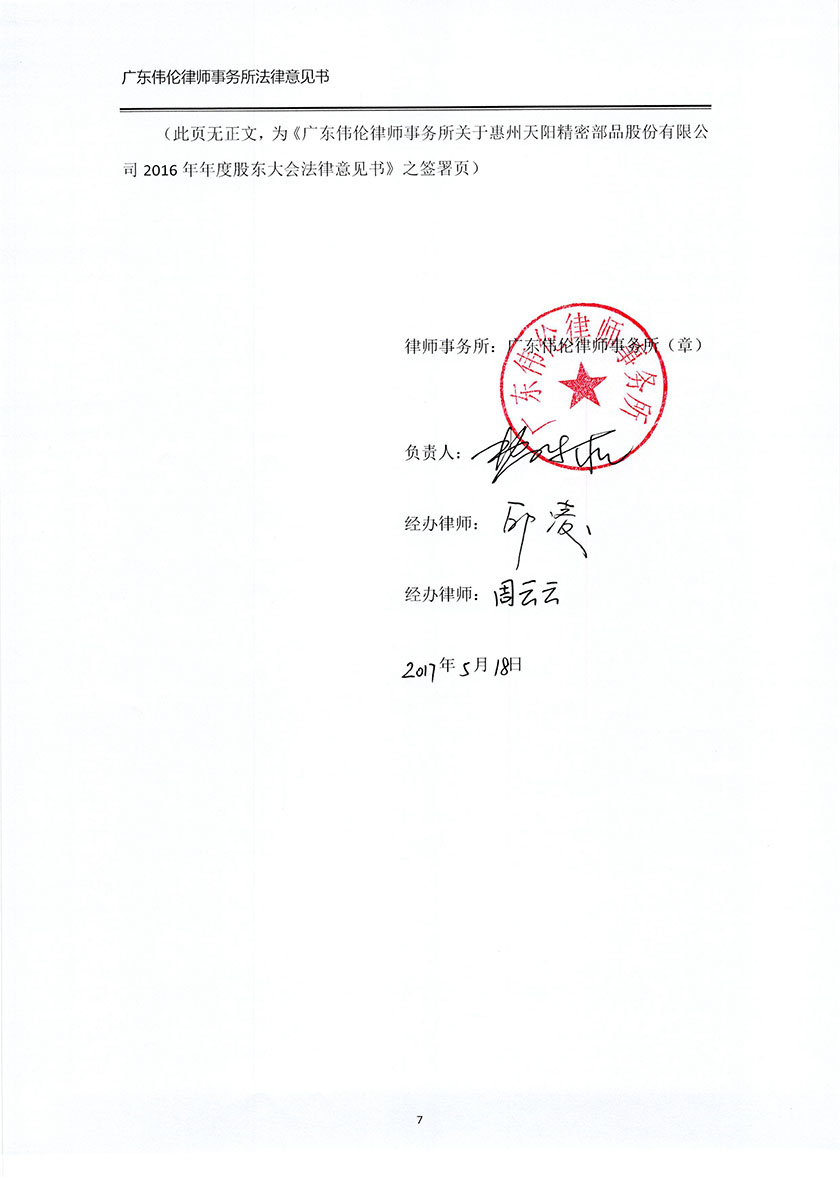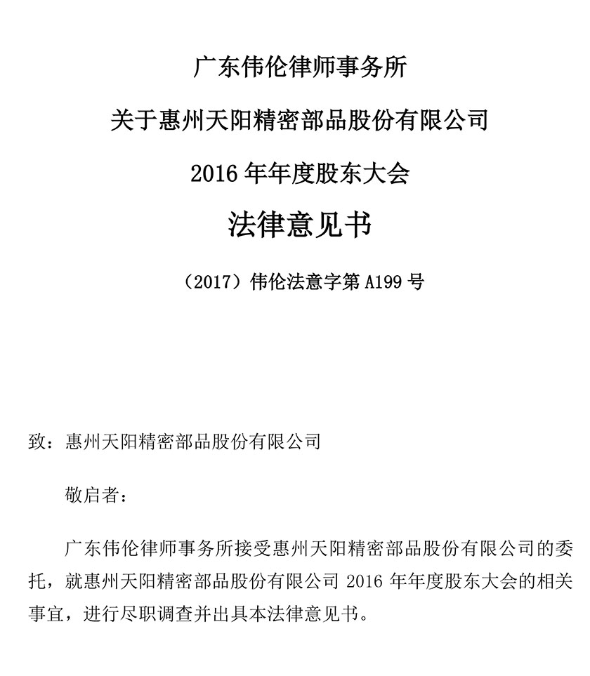 2016年年度股东大会法律意见书